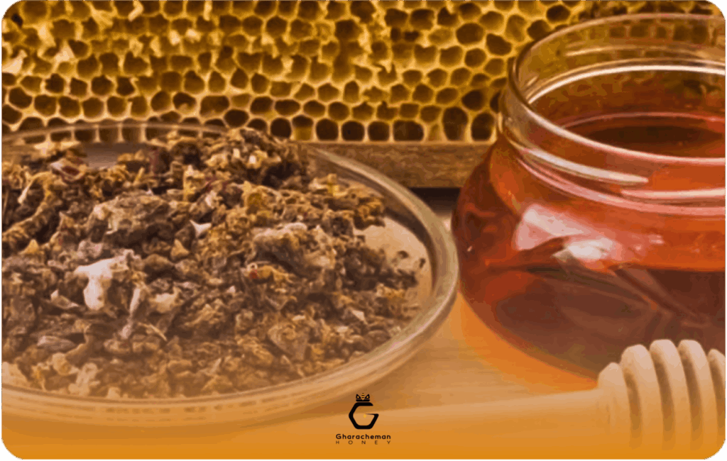- بره موم خام: مقدار کمی (به اندازه یک نخود) را بجوید یا با عسل مخلوط کنید.